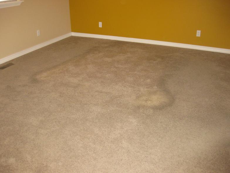 Regular scheduled carpet cleanings can help prevent stains like the stain on the left from developing. Left untreated these stains can damage the fibers of your carpet which can not be repaired.